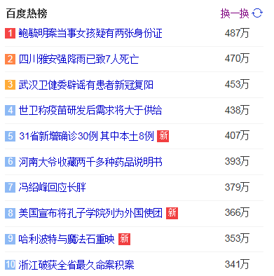 1.鮑毓明案當事女孩疑有兩張身份證 獵頭熱點熱度487萬