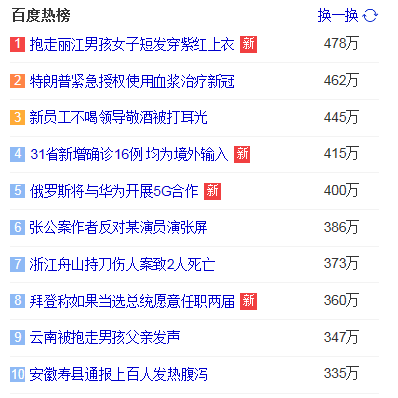 2.特朗普緊急授權使用血漿治療新冠 獵頭熱點熱度462萬