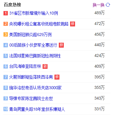 1.31省區(qū)市新增境外輸入10例 獵頭熱點熱度489萬