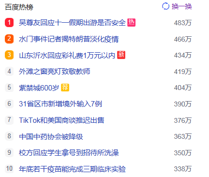 1.吳尊友回應(yīng)十一假期出游是否安全 獵頭熱點熱度483萬