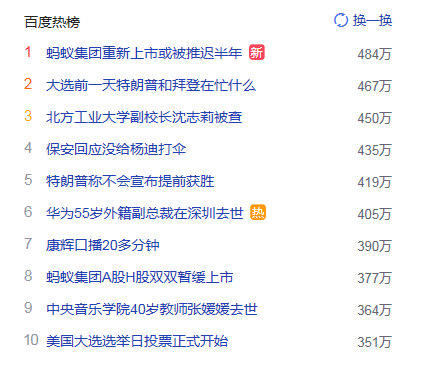 1.螞蟻集團(tuán)重新上市或被推遲半年 獵頭熱度熱點(diǎn)484萬(wàn)