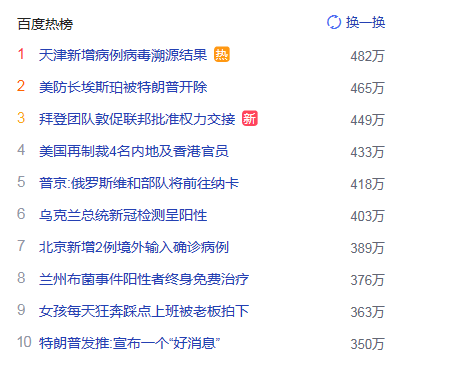 1.天津新增病例病毒溯源結果 獵頭熱度熱點482萬